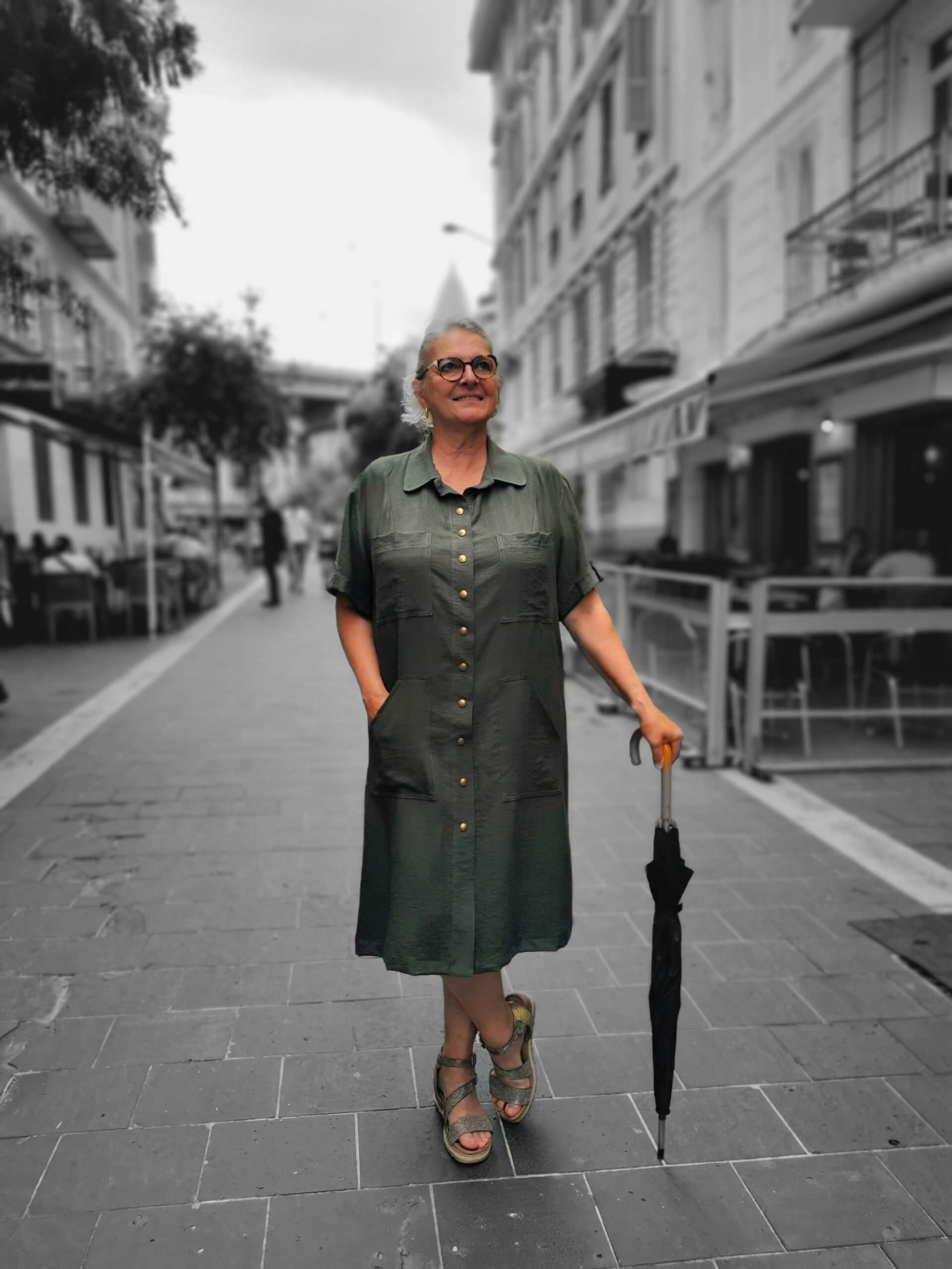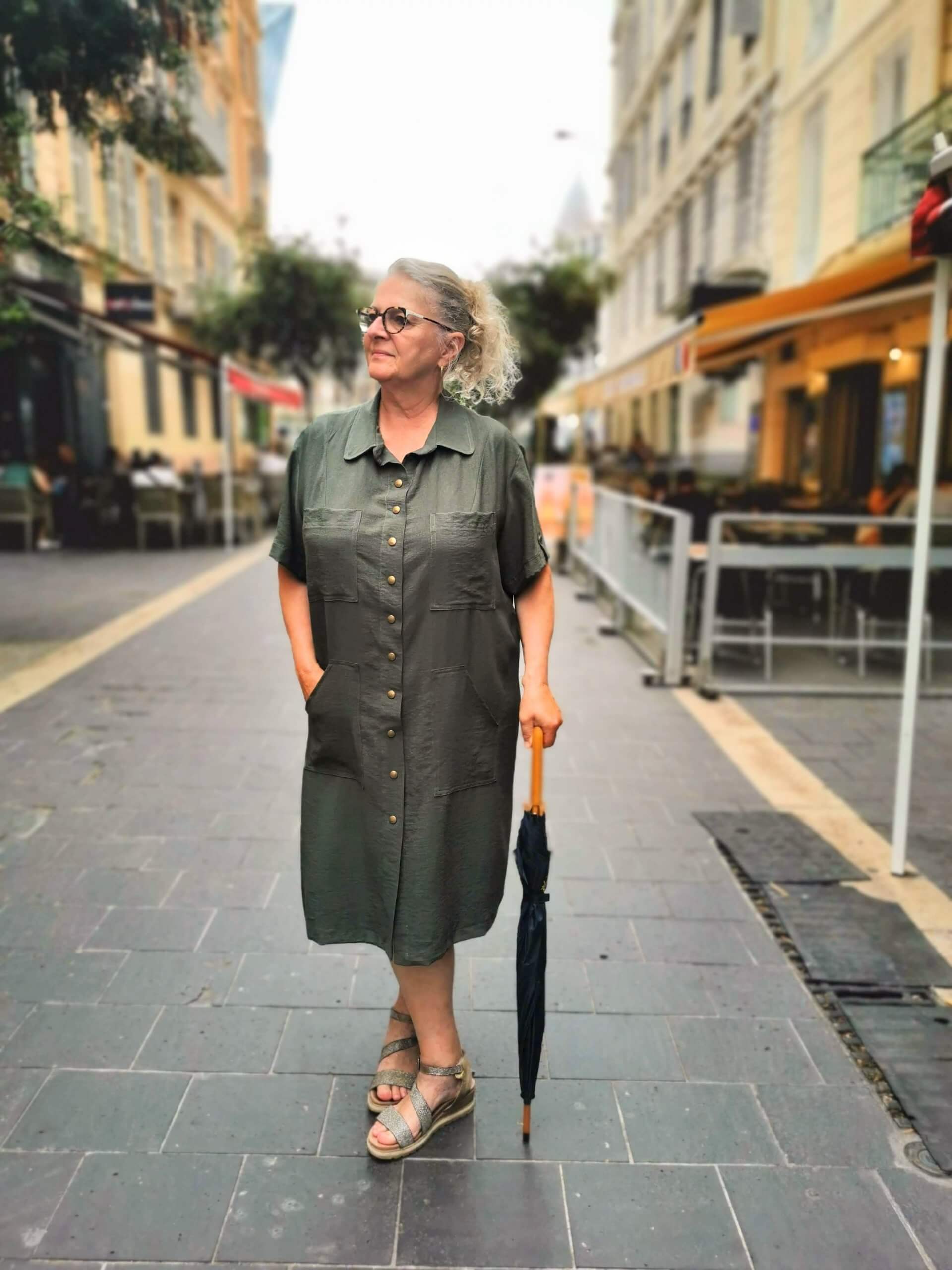 Comment ? c’est simple : j’ai utilisé le dos de la versoin chemise et je l’ai allongée, puisque la conception est toute droite. Pour le devant, j’ai utilisé l’avant de du short en prolongeant la patte de boutonnage. Il est possible d’utiliser le buste devant de la chemise.