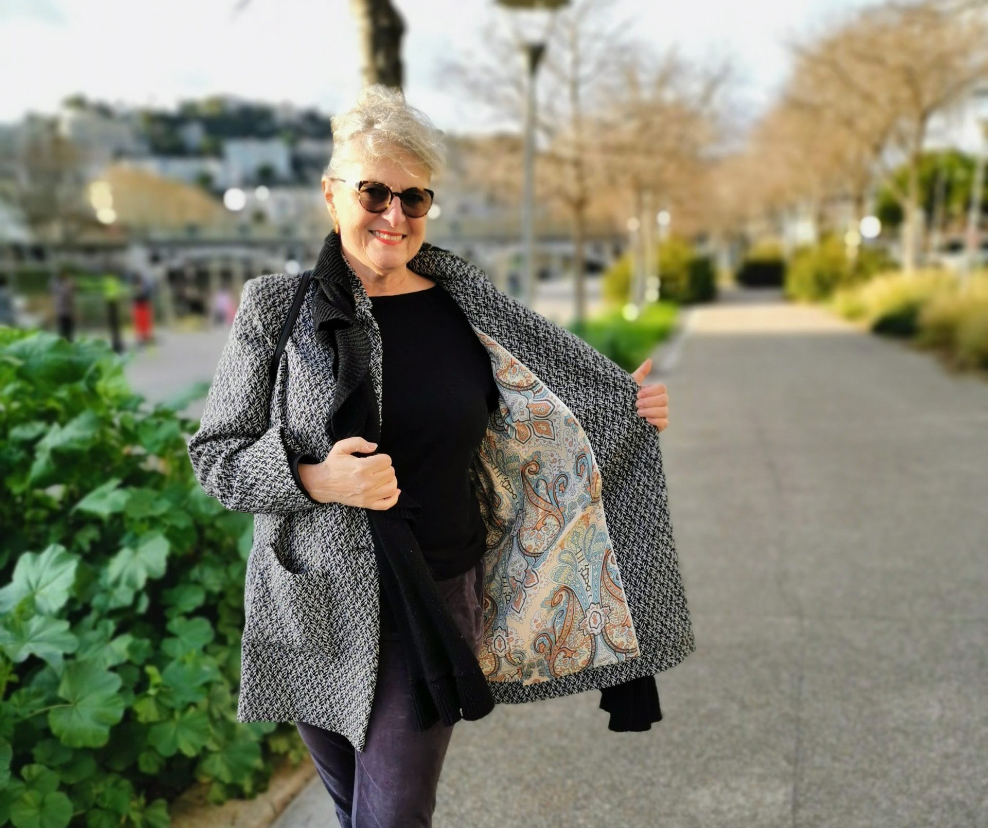 ❤️ J’aime : le style du col, les poches doublées, bien que j’aurais préféré les poches passepoilées 🤷🏼‍♀️ le biais entre le tissu et la doublure, plutôt que du passe poil 🤩
